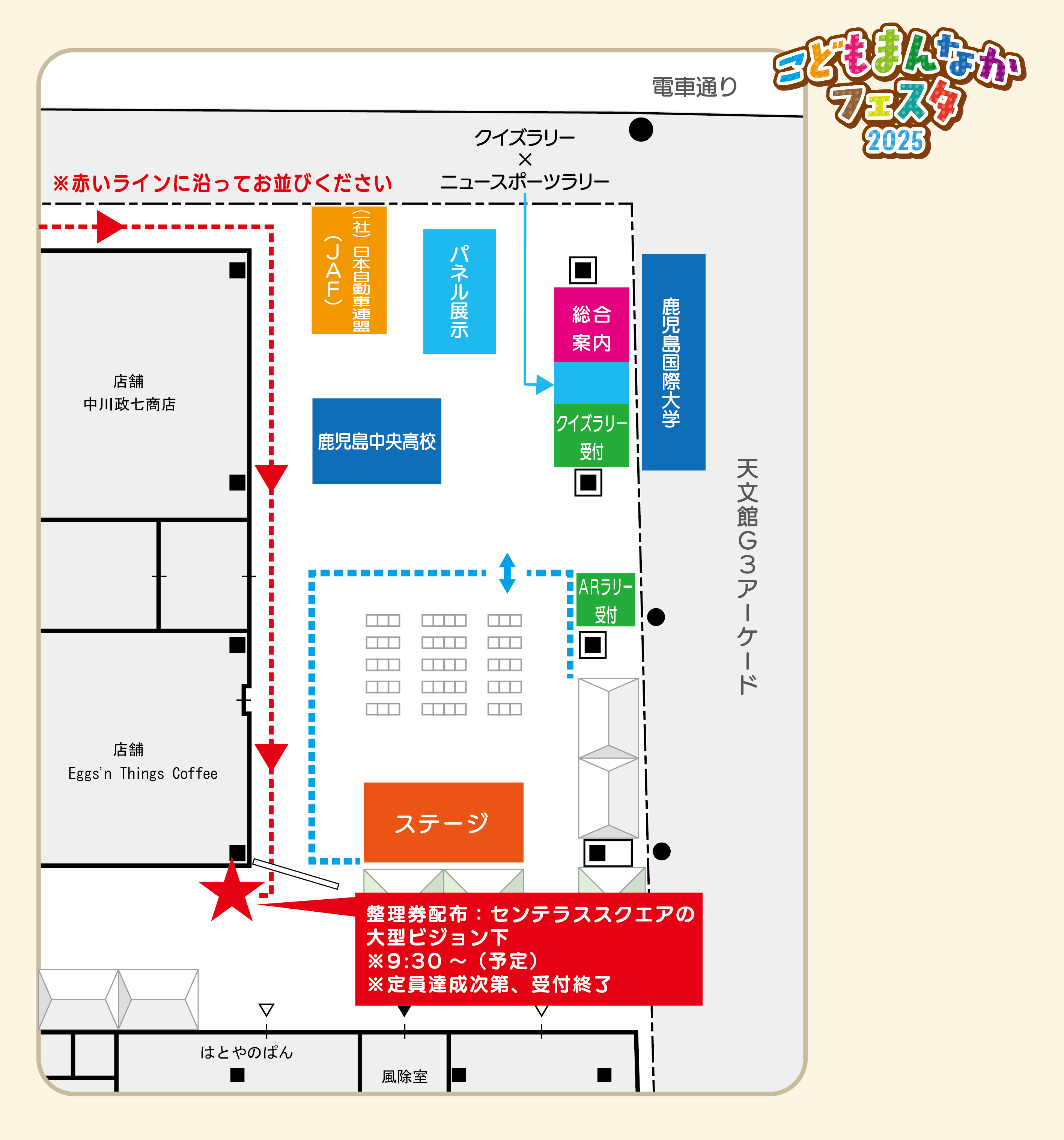 - 当日の混雑状況により、指定の時間よりも各整理券の配布を早める場合がございますので、予めご了承ください。